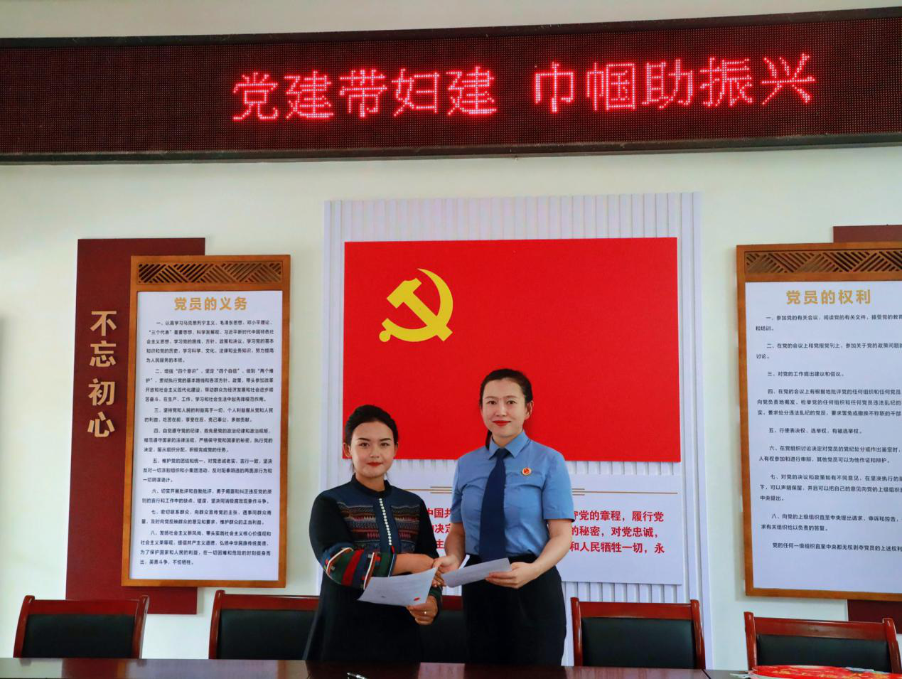 景洪市检察院妇委会与勐龙镇邦飘村妇女组织签订共建协议。协议指出,景洪市检察院妇委会与勐龙镇邦飘村妇女组织要本着“资源共享、优势互补、协力攻关、共同提高”的原则,分享工作资源,发展共建优势,共同促进妇女儿童权益工作的全面发展。