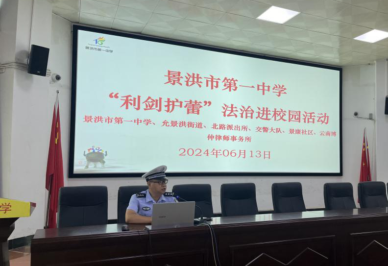为进一步贯彻落实“利剑护蕾”专项行动,切实保护未成年人的合法权益,提升青少年的法治意识和自我保护能力。6月13日,允景洪街道办事处联合市交警大队三中队、景洪市第一中学、北路派出所、景康社区以及云南博仲律师事务所共同举办了一场主题鲜明、内容丰富的法治教育宣传活动,通过多方合作,共同营造一个有利于未成年人健康成长的法治环境。