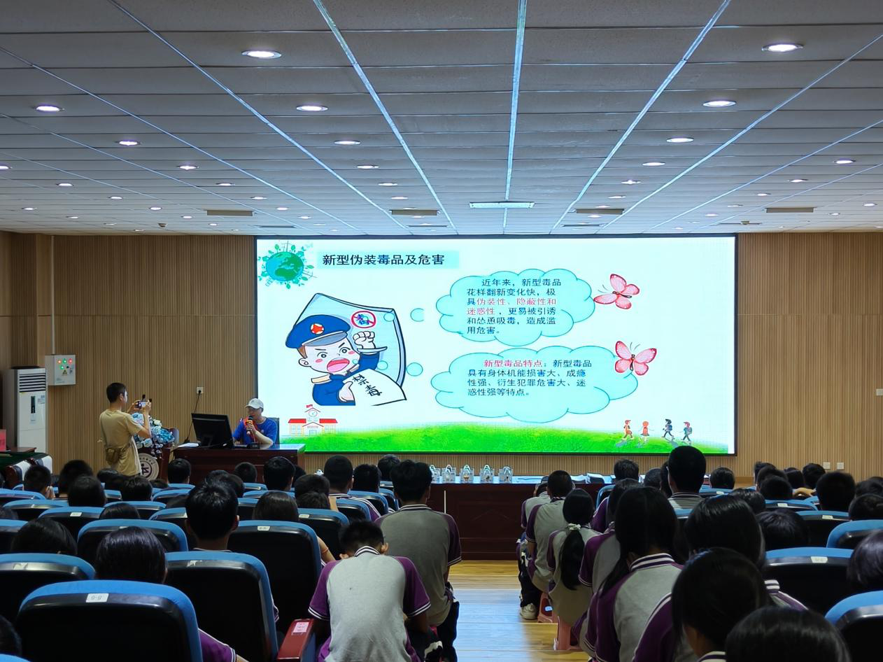 课堂上,禁毒志愿者向学生科普了预防新型毒品知识,从新型毒品的伪装、危害和如何识别、防范方面做了详细讲解,课堂上穿插禁毒知识问题抢答、播放禁毒动漫,发放法治小礼品等环节积极和同学们互动,现场热情高涨。