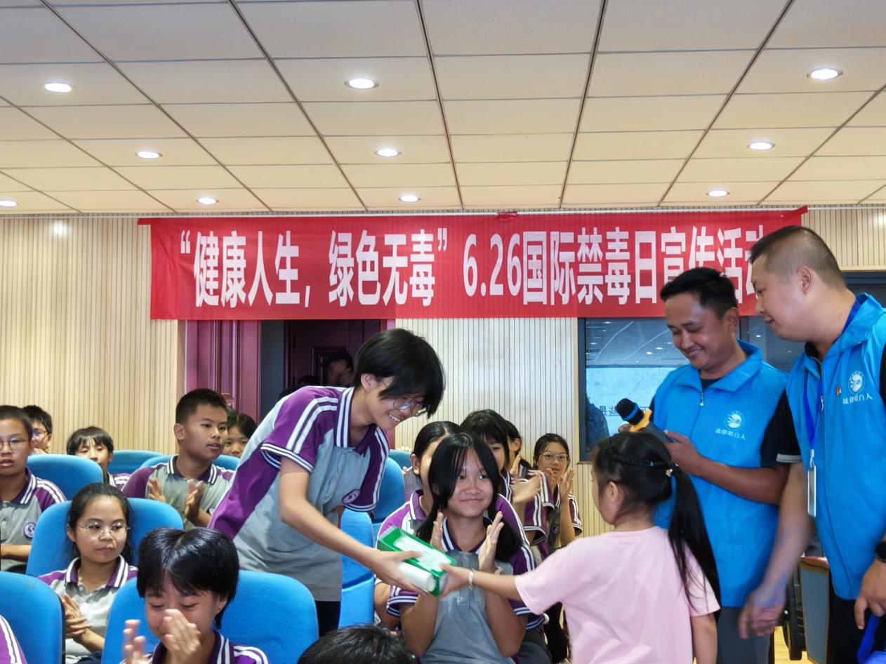 青少年是国家的希望,民族的未来。为弘扬禁毒精神,提高青少年识毒、防毒、拒毒的意识。嘎栋街道联合司法所、景龙社区、景明社区在万达长水中学开展“6.26”国际禁毒日宣传进校园活动。此次活动以“防范青少年药物滥用”为主题,旨在通过丰富多彩的形式载体,普及禁毒知识,传递全民禁毒正能量,为嘎栋争创“无毒示范街道”助力添彩。