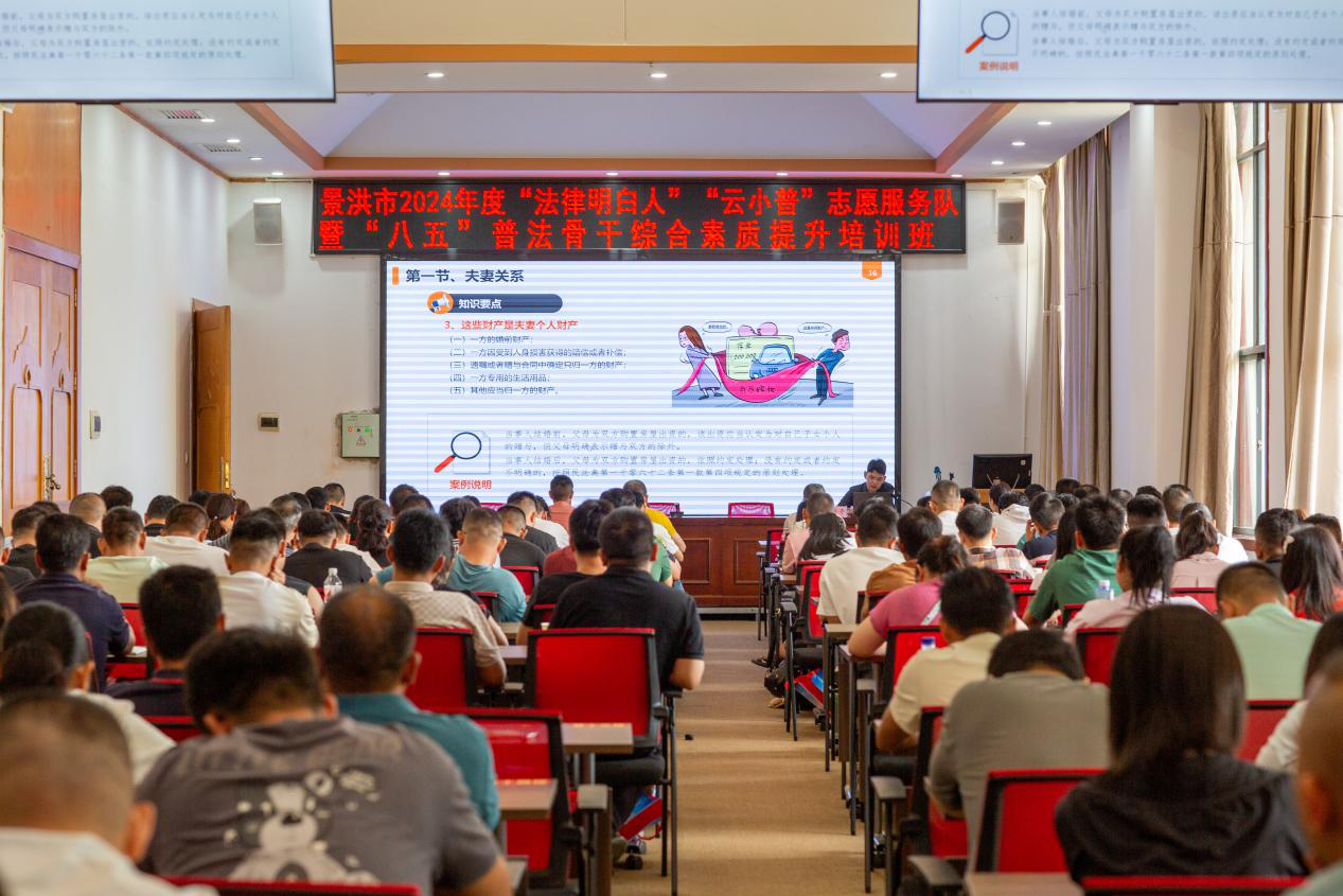 7月5日,景洪市人民法院受邀到景洪市委党校,为2024年度“法律明白人”“云小普”志愿服务队暨“八五”普法骨干综合素质提升培训班作专题授课。