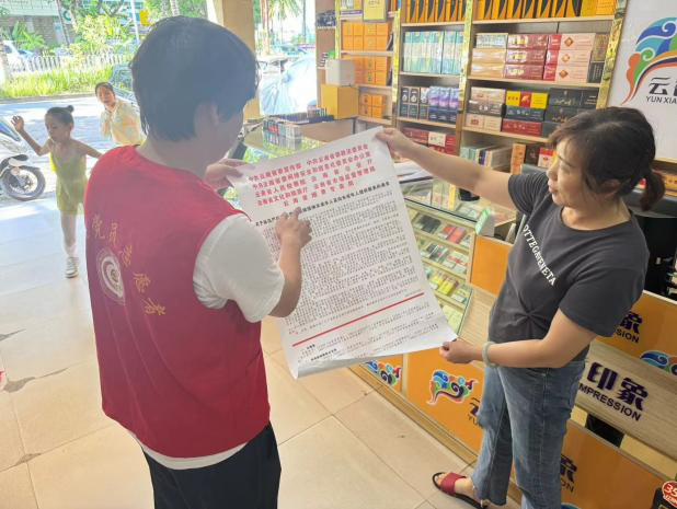 此外,为了杜绝香烟零售店向未成年人销售香烟的情况,社区工作人员对辖区内的香烟零售店进行了逐一走访。向店主发放了“关于依法严惩违法违规接纳未成年人及向未成年人提供服务的通告”,明确告知其禁止向未成年人销售香烟的法律规定,并要求店主在店内显著位置张贴禁止向未成年人售烟的标识。同时,鼓励店主积极举报向未成年人售烟的违法行为,共同为未成年人创造一个无烟的成长环境。