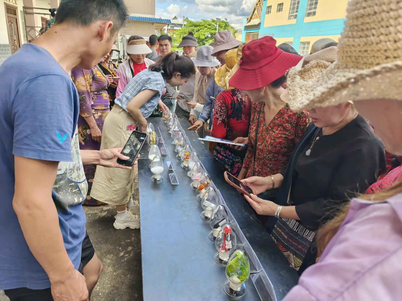 在参观毒品模型环节,民众们纷纷投来好奇的目光,拿出手机拍照、录小视频,你一言我一语地向工作人员询问有关毒品的知识。“这个不是我们平常都会买给小朋友吃的巧克力和薄荷糖吗?”“天啊,这个烟我平常也会买来抽的。”工作人员向大家解释:“平时我们在正规的超市、小卖部买的巧克力、薄荷糖等零食以及香烟等商品,都是可以正常食用的,需要警惕的是不要随便接受陌生人给的食物、饮品、香烟等,长期离开视线的饮品、食物最好不要再食用。即使是认识的人也要保持几分警惕,要记住,熟人也有很大的作案概率。”有几位老咪涛(傣语“老阿妈”的意思)指着毒品模型表示,她们打算将拍摄的照片和小视频带回家,与家人分享今天学到的知识点。