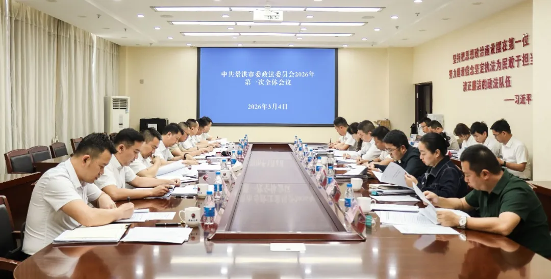 3月4日,中共景洪市委政法委员会召开2026年第一次全体委员会议。会议传达学习了习近平总书记对政法工作的重要指示精神、《中国共产党领导全面依法治国工作条例》主要精神和中央、省委、州委政法工作会议精神。
