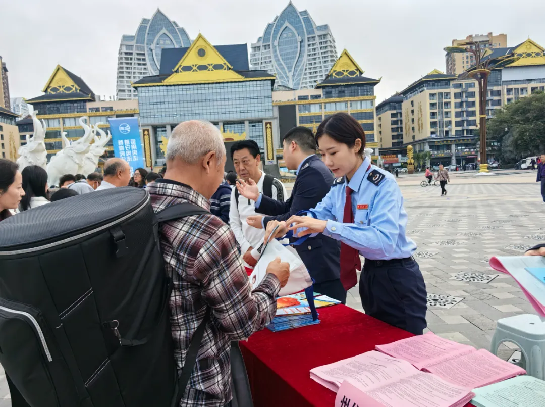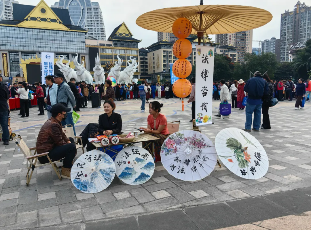 在景洪市泼水广场活动现场,普法文艺节目快闪将宪法基本原则、公民权利义务等核心内容融入歌曲、舞蹈中,期间穿插法治知识有奖问答和幸运抽奖活动,观众边看精彩的文艺节目边了解法律知识。与此同时,普法游园会还设置了宪法知识问答转盘、法治拼图、普法盲盒等互动游戏,参与者通过答题闯关即可获得富有民族特色的普法大礼包,让法治精神在轻松愉快的氛围中入脑入心。