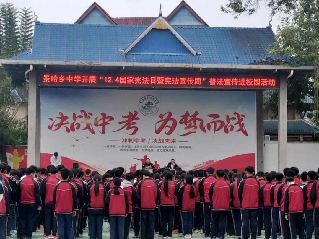 2025年12月4日,我国迎来第十二个“宪法宣传日”。为深入学习贯彻宪法精神,景哈乡边防和平安法治办联合景哈司法所、景哈边境派出所、景哈乡新时代文明实践所等多部门,紧扣“大力弘扬宪法精神,建设社会主义法治文化”主题,结合边境地区多民族聚居、文化多元的鲜明特点,精心策划开展“宪法宣传周”系列活动。从校园课堂到村寨火塘,从集市摊位到群众身边,法治的声音传遍景哈的每个角落,构筑起立体化、全覆盖的普法宣传矩阵,为深化边境乡镇法治建设注入强劲动力。