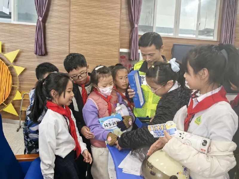以“风火轮”对应交通规则,结合电动车模型对比、安全动画播放,直观讲解小学生禁骑电动车、遵守红绿灯、过马路“一停二看三通过”等安全常识,组织学生宣誓“文明交通 礼行天下”,将交通安全理念根植于心;