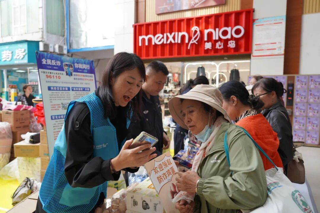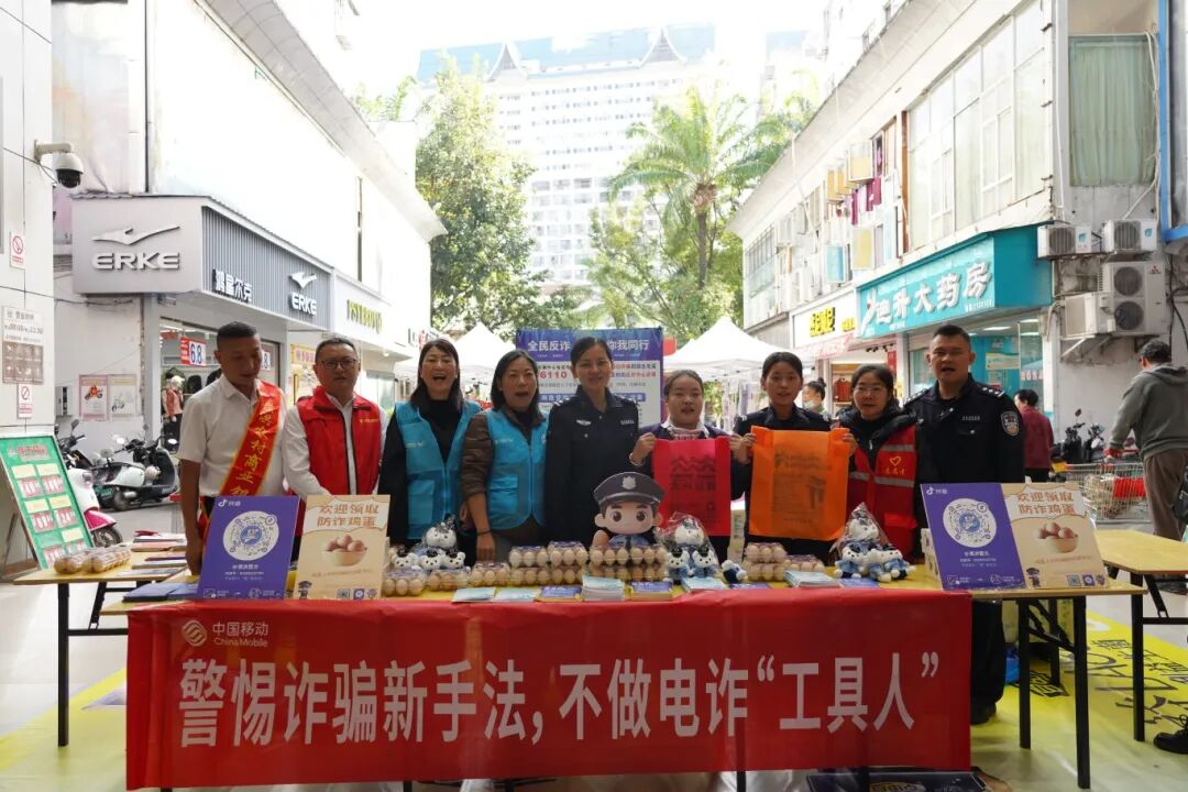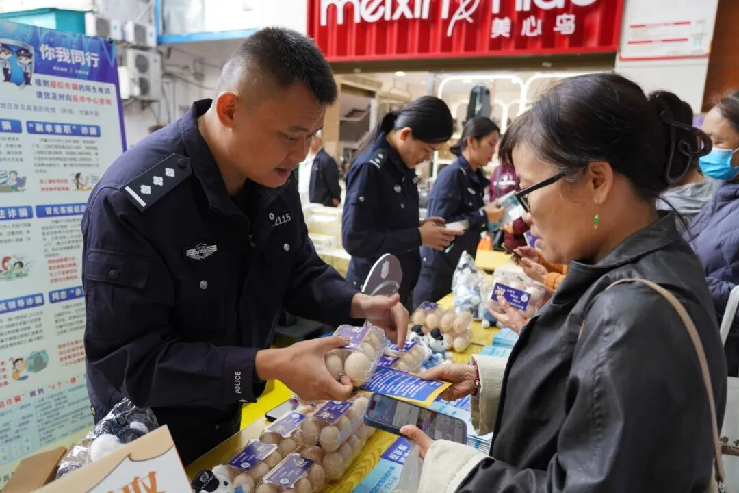 12月5日上午,景洪市公安局刑侦大队联合市场监管局、允景洪街道、景洪农村商业银行、中国移动公司、大兴超市在超市门口开展反诈宣传活动。反诈民警与工作人员在现场设有咨询摊位,向居民发放防范网络电信诈骗宣传材料,并送上特殊的礼物——“反诈鸡蛋”。市民只需安装“国家反诈中心APP”、关注“景洪警方”抖音账号便可领取。通过赠送“反诈鸡蛋”,提高群众参与的热情,提升反诈骗的宣传力度。