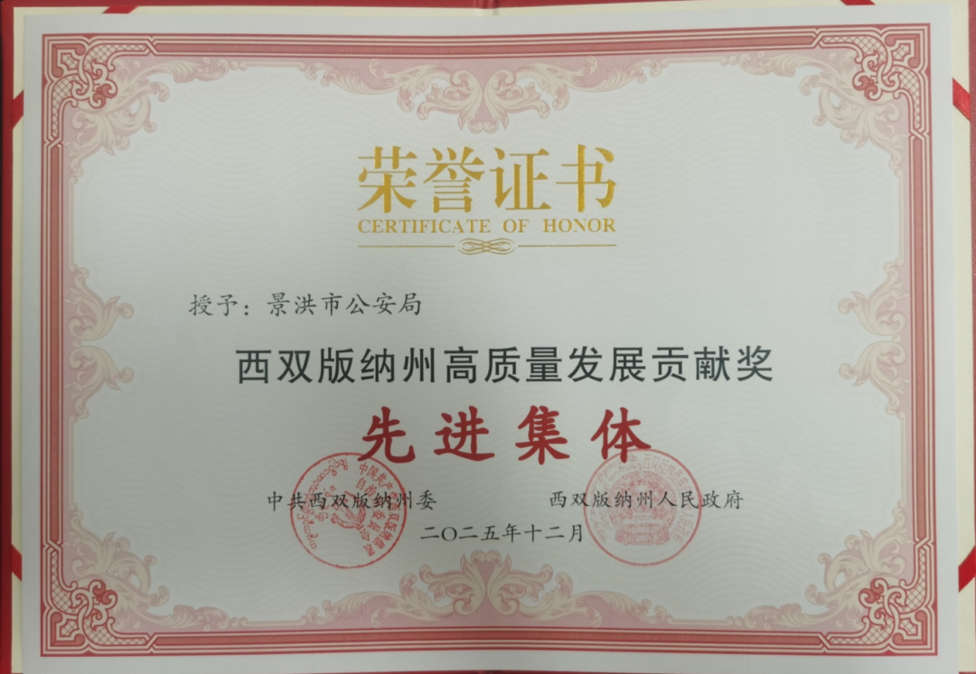 近日,中共西双版纳州委、西双版纳州人民政府发布表彰决定,景洪市公安局荣获西双版纳州高质量发展先进集体,1名民警荣获西双版纳州高质量发展贡献奖先进个人,尽显公安担当与风采。