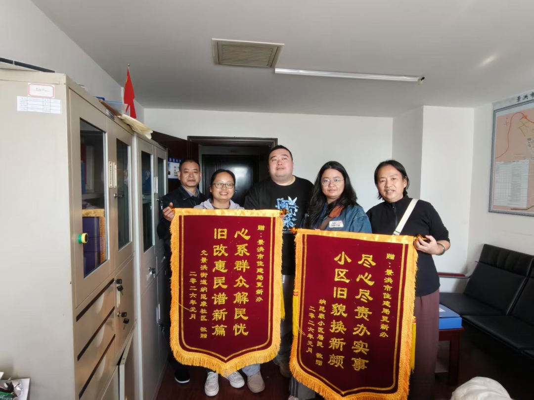 聚焦纳昆康小区及周边老旧小区设施陈旧、排污不畅等痛点,景洪市住建局更新办精准推进改造工程,纳昆康社区搭建政企沟通桥梁,收集民意、化解纠纷,保障门禁安装、污水沟改造等项目顺利落地。移动一区门禁项目竣工后,通过市场化运作实现惠民增收,2026年伊始已为每位居民发放收益200元。1月30日,小区居民代表向景洪市住建局更新办赠送两面锦旗,高度认可旧改工作成效,老旧小区实现“旧貌换新颜+惠民增收”双突破。
