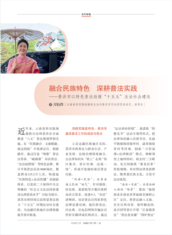 【媒体关注】司法部主管杂志《司法所工作》刊发专稿:景洪市融合民族特色 深耕普法实践